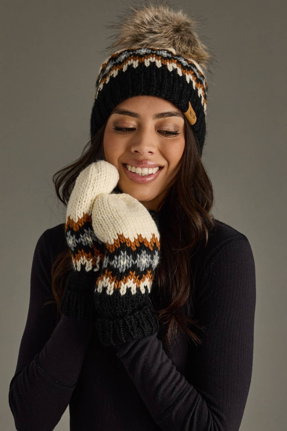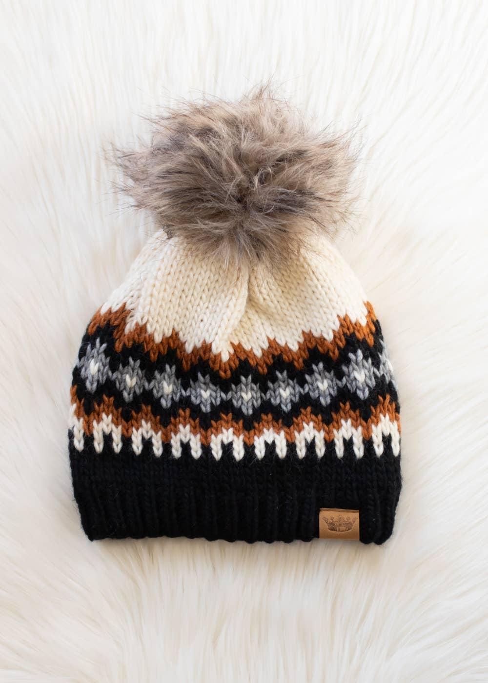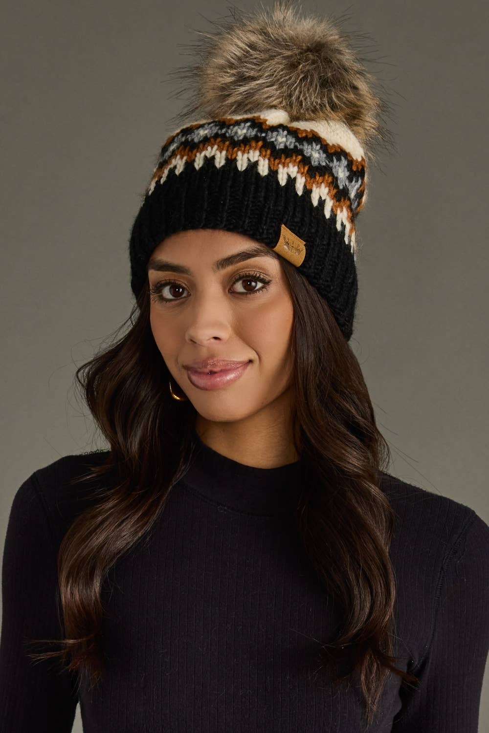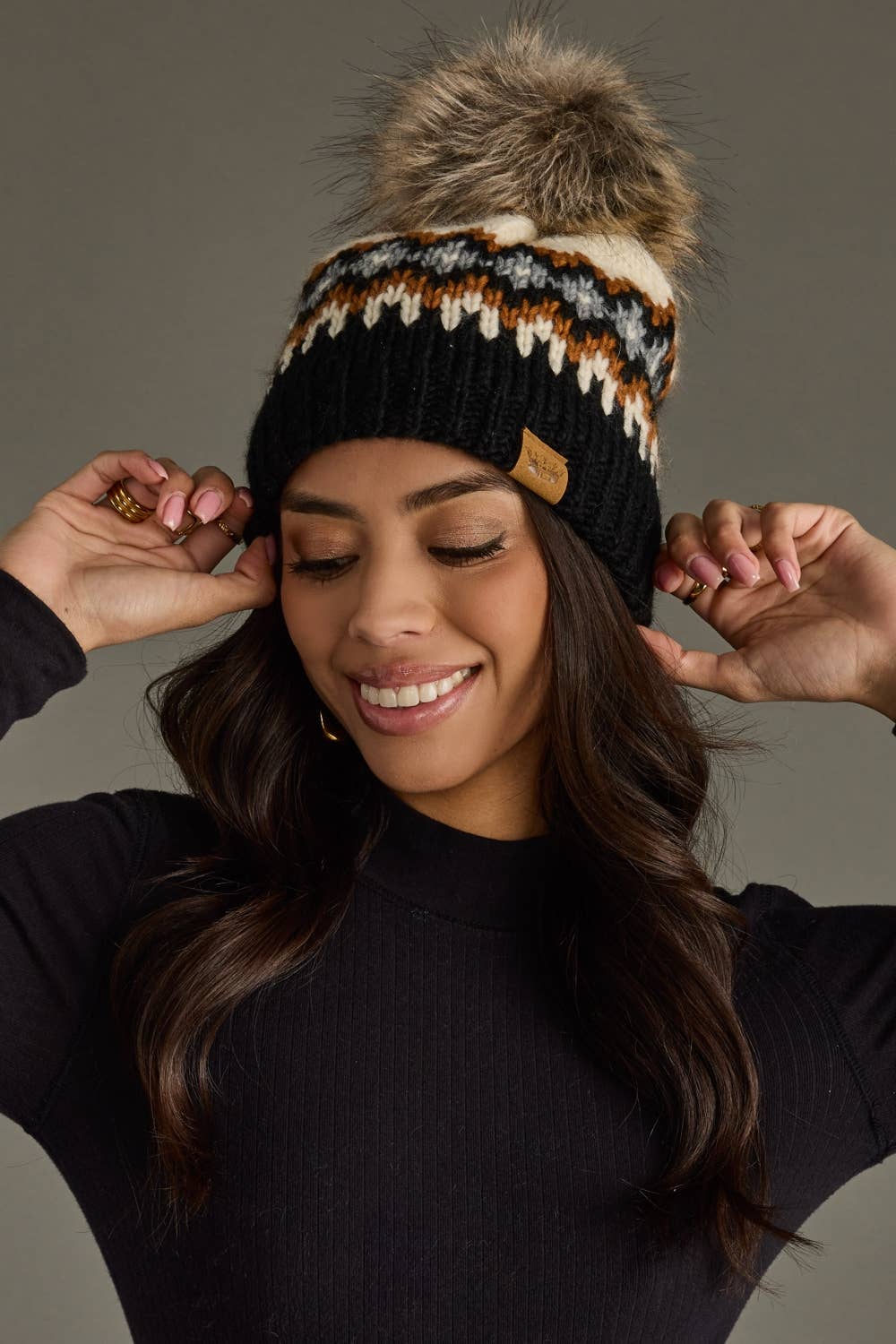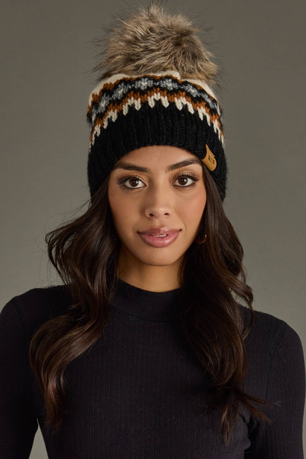 Natural faux fur pom accent Fleece lined 100% Acrylic